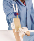 This economically priced model allows purchasing a simulator for each student. No more wasting precious class time by waiting for the next free simulator. The trainer can be attached to the arm of the student. It shows cephalic, basilic and median cubital vein in correct anatomical position. An arterial vessel completes the model. Designed for basic training.