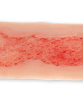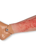 This self-adhesive wound represents a venous leg ulcer, a substance defect in the tissue of the lower leg as a result of a chronic venous insufficiency. The shown epithelisation phase represents the most common ulcus disease (60% to 80% of all ulcus diseases) in the stage of building epithelial tissue, finally leading to close the wound. This large wound is perfect for adhering at the lower leg and adheres by itself. For longer use, it can be fixed with a special skin glue. All materials used in this product are dermatologically harmless.